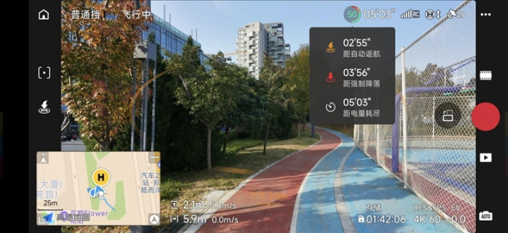 我们在实际飞行中,电池充满电后,50%的电量剩余,到自动返航时间只能支持约3分钟左右。