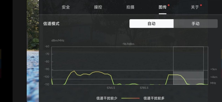 大疆Neo2支持最高10公里的图传系统(FCC标准),可在图传设置中手动选择低干扰信道,保障传输稳定性。