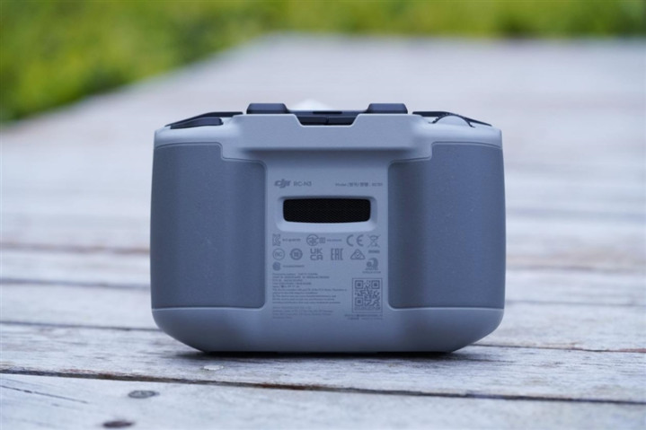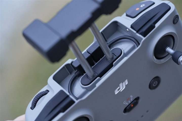 畅飞套装中附带的大疆RC-N1遥控器。集成了摇杆、飞行模式键、返航键、Fn键(默认功能为云台90度翻转)以及拍照/视频切换键,功能一应俱全。