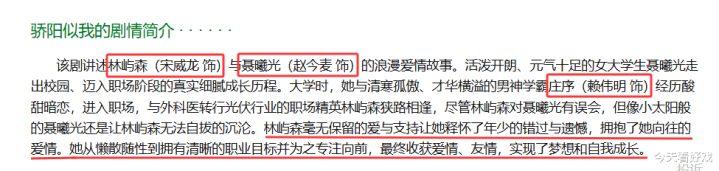 林林总总,样板戏式的绿茶室友标准女二;表面上你(男二)对我爱搭不理,实际上的我(女主富二代)你高攀不起的天龙人爽文套路;初恋的微痛与遗憾最终会被更强大的爱人带来的幸福而抚平的爱情神话结局……
