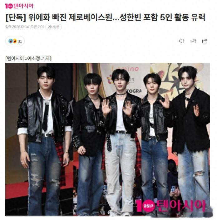 据韩国媒体报道,将于今年3月结束合约的韩国限定男子组合ZEROBASEONE可能会以除YH娱乐所属成员(章昊、Ricky、金奎彬、韩维辰)外的五人组合(成韩彬、金地雄、石马修、金太来、朴乾煜)继续活动。