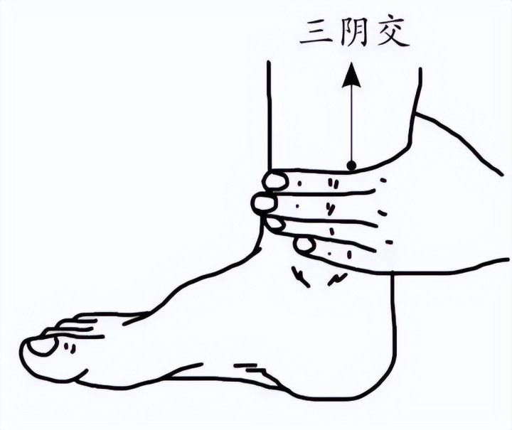 脚踝内侧往上四横指,胫骨后缘的凹陷处。它是肝、脾、肾三条经络的交汇穴,能滋阴养血,适合气血不足导致的失眠——比如晚上容易醒、醒后口干舌燥,或是女性更年期失眠,按它能补足气血,让睡眠更沉。